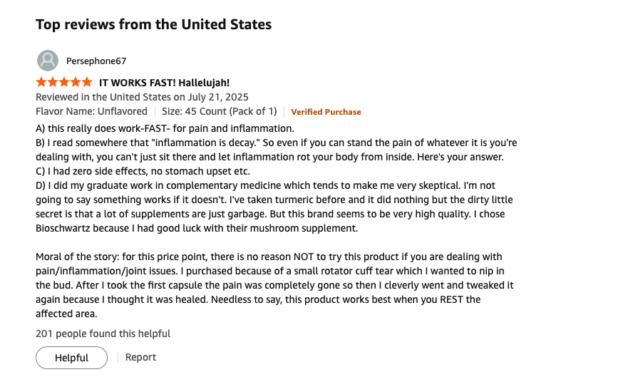 The advanced formula uses organic turmeric curcumin plus BioPerine® for maximum absorption—boosting bioavailability by up to 2000%.